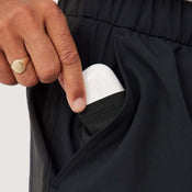 A lightweight training 5” training short with front pockets, built-in shorts liner and hidden phone pocket in Train Stretch Woven fabric—a 100% recycled polyester material for medium to high-sweat recreation.