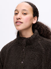 Popular Snap Jacket returns in new OV fabric Candy Fleece—an Italian wool-blend fleece that has a natural and warm handfeel. This shirt jacket has a curved hem and is designed as oversized to throw over your warmer underlayers. Lined with breathable mesh and printed with contrast Recreation branding on the interior. Jacket carries an oversized main label featuring OV founder Ty’s ‘Doing Things’ scribble.