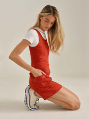 Our most functional dress yet, made in our durable and sweat-wicking TechTwill fabric. Featuring side cargo pockets, a metal carabiner loop, a back zipper for easy on/off, and a built-in shorts liner with a convenient fabric flap for easy-peasy bathroom breaks. The dress for all of your adventure needs on or off the trail.