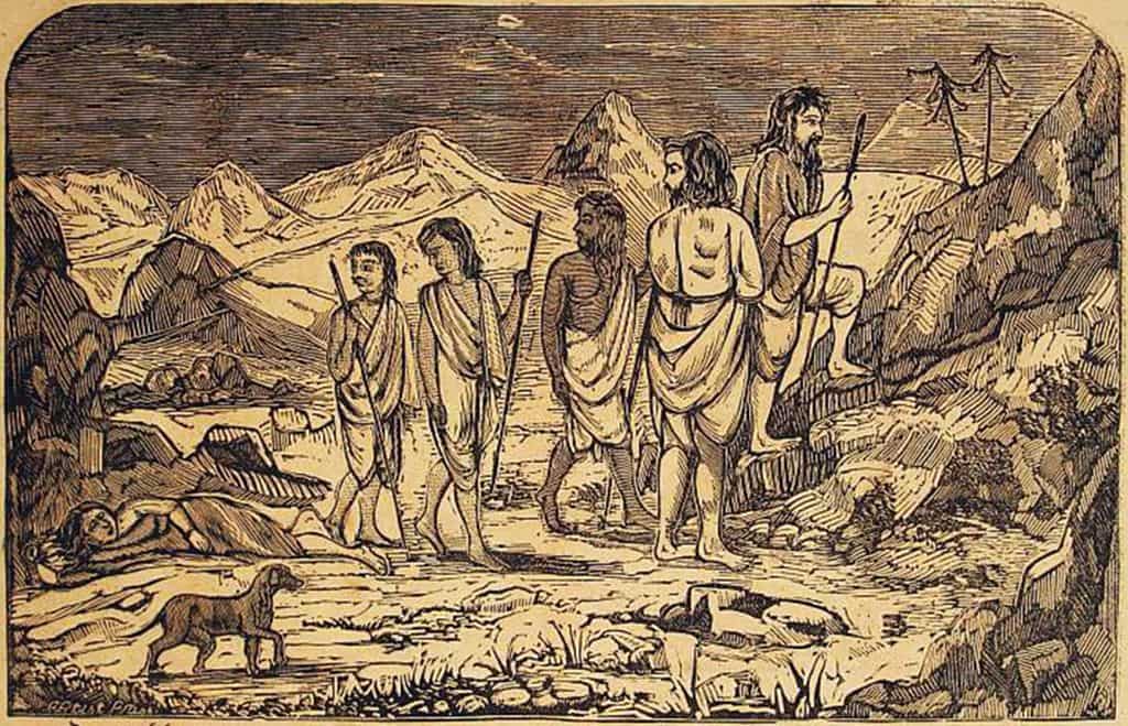 Svargarohana Parva is the last chapter (book) of Hindu epic Mahabharat. Their journey to heaven started after the Kurukshetra war, in which the Pandavas emerged victorious, they decided to renounce their kingdom and live a life of penance. Yudhisthira, the eldest of the Pandavas, along with his brothers and wife, embarked on a journey towards the Himalayas. During the journey, a dog started following them and remained with them throughout the journey.